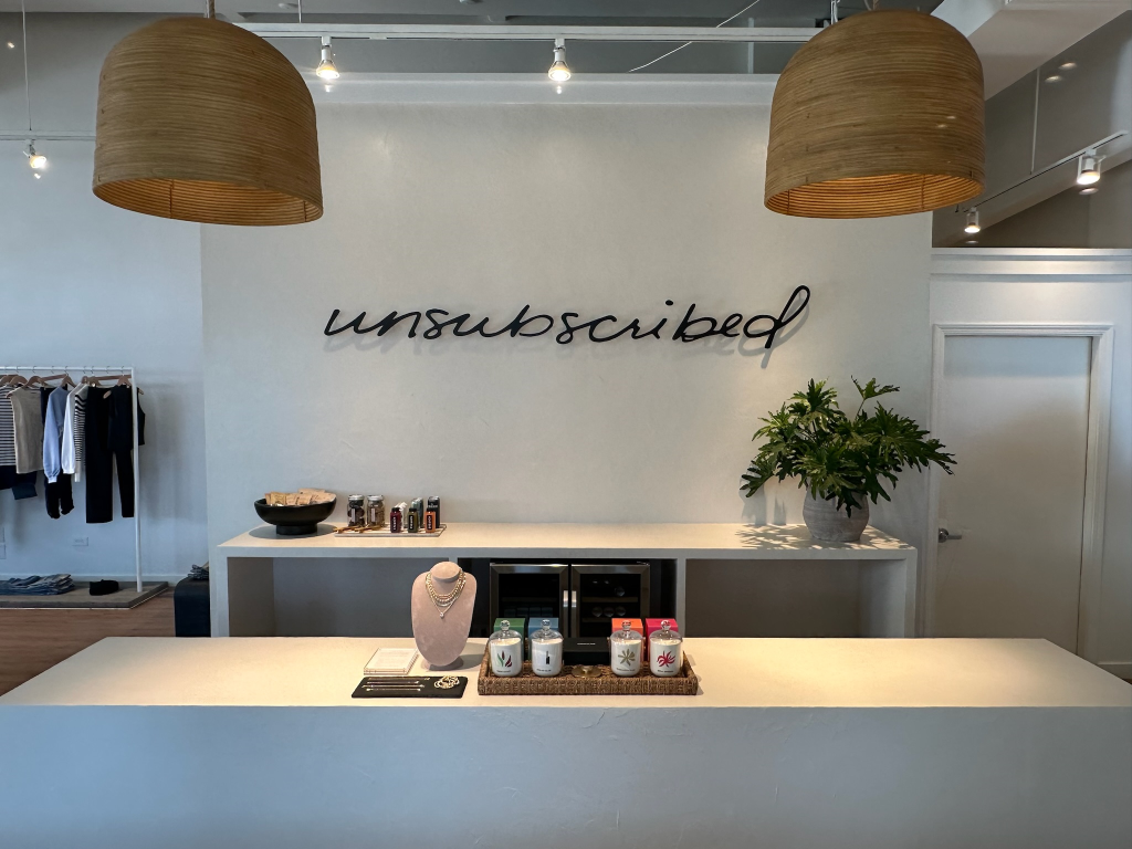 The brand has cultivated a loyal community on the East Coast, with stores in East Hampton, N.Y.; Greenwich and Westport, Conn.; New York, and Palm Beach, Fla. The 1,800-square foot Santa Monica location, on the corner of Montana Avenue and 16th Street, is Unsubscribed’s first West Coast store, meant to embody its coastal roots. It has 1,200 square feet of selling space.